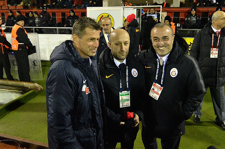 Maç öncesi Galatasaray yöneticisi Abdurrahim Albayrak ile Eskişehirspor'un Teknik Direktörü Michael Skibbe birbirlerine sarılıp gazetecilere poz verdi. Michael Skibbe ile Galatasaray Teknik Direktörü Hamza Hamzaoğlu birbirlerine başarılar diledi. Michael Skibbe, Galatasaraylı futbolcularla da tokalaştı.