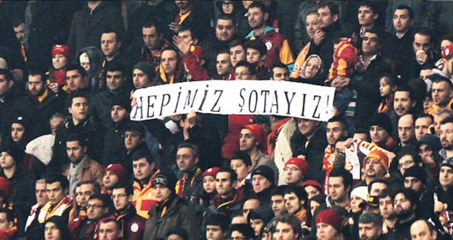 Ezeli rakipleri Fenerbahçe'nin sahasında yaşandığı iddia edilen olayla ilgili olarak Kasımpaşa'nın Gürcü teknik adamına destek veren sarı-kırmızılılar, "Hepimiz Şotayız" pankartıyla gönderme yaptı.