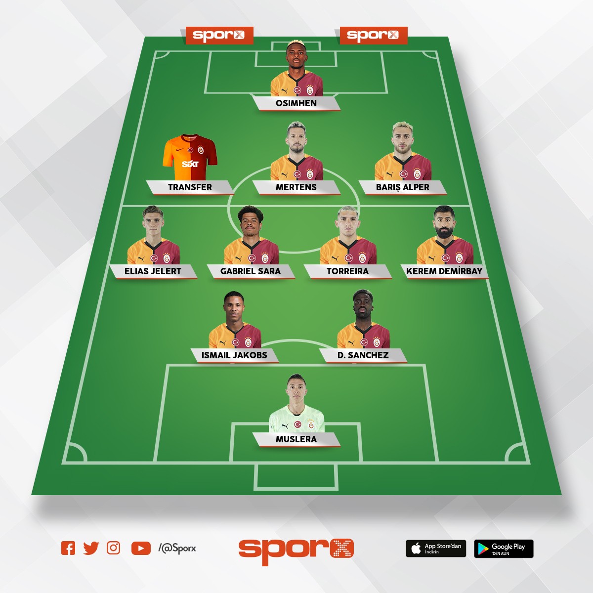 Galatasaray G.Sara sadece Sağ Merkez OS,Singo jakobs sürekli 11 oynamamalı