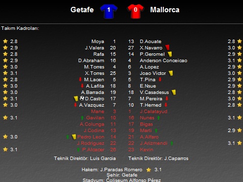 İspanya Birinci Futbol Ligi La Liga'da sonucu merakla beklenen mücadelede Getafe, ligde üst sıralarda yer alan Mallorca'yı 1-0 ile geçti.