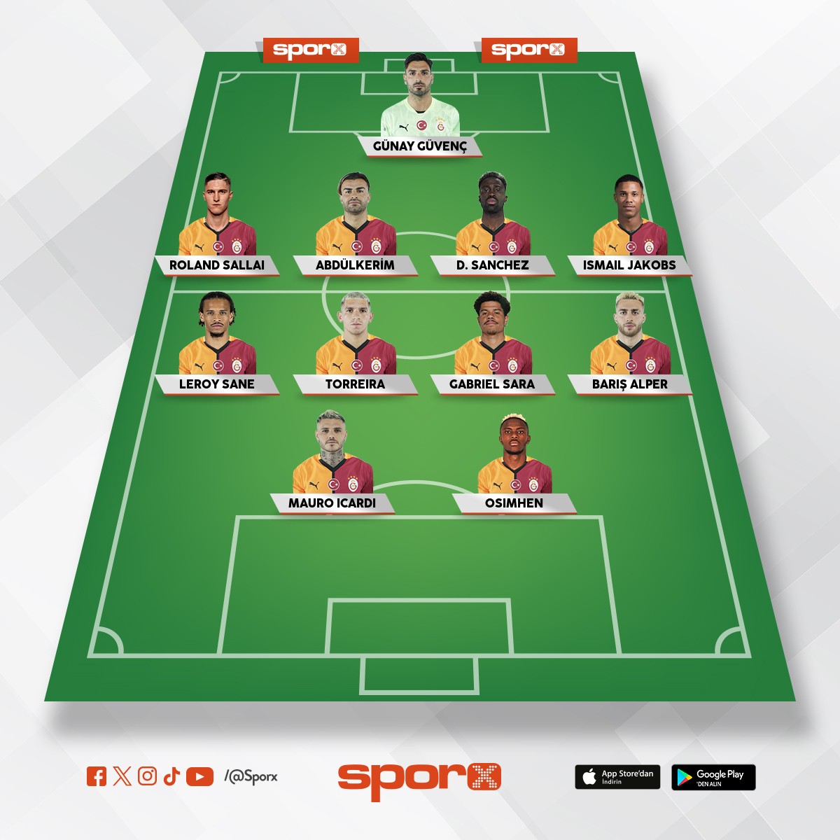 Galatasaray G.Sara sadece Sağ Merkez OS,Singo jakobs sürekli 11 oynamamalı
