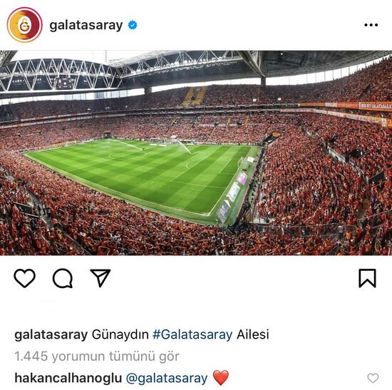 AC Milan ile olan sözleşmesi sona eren ve yeni kontrat için görüşmelerini sürdüren A Milli yıldız, Galatasaray'ın "Günaydın" paylaşımının altına "Galatasaray" yazarak kırmızı kalp emojisi bıraktı. Hakan'ın bu mesajına binlerce beğeni gelirken, birçok Galatasaray taraftarı da oyuncuyu sarı kırmızılı takıma çağırdı