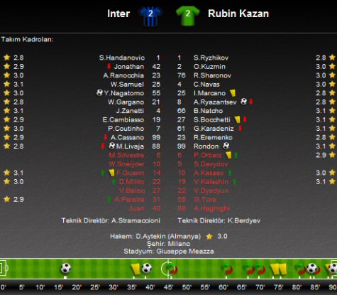 UEFA Avrupa Ligi H Grubu ilk hafta maçında Inter sahasında Rubin Kazan'ı ağırladı.