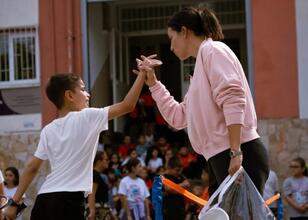 Eski milli tenisçi İpek Soylu Şemin, daha sonra çocuklarla tenis oynadı.