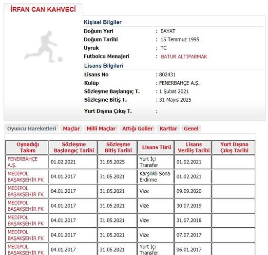 Öte yandan Fenerbahçe Kulübü, İrfan Can Kahveci'nin lisansını çıkarttı.