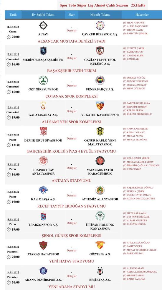 Spor Toto Süper Lig'in 25. haftasındaki maçları yönetecek hakemler TFF Merkez Hakem Kurulu tarafından açıklandı.