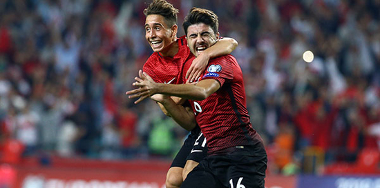 Türkiye: Volkan, Şener, Ömer Toprak, Caner Erkin, Mehmet Topal, Tolga Ciğerci, Ozan Tufan, Emre, Hakan Çalhanoğlu, Volkan Şen, Cenk Tosun.