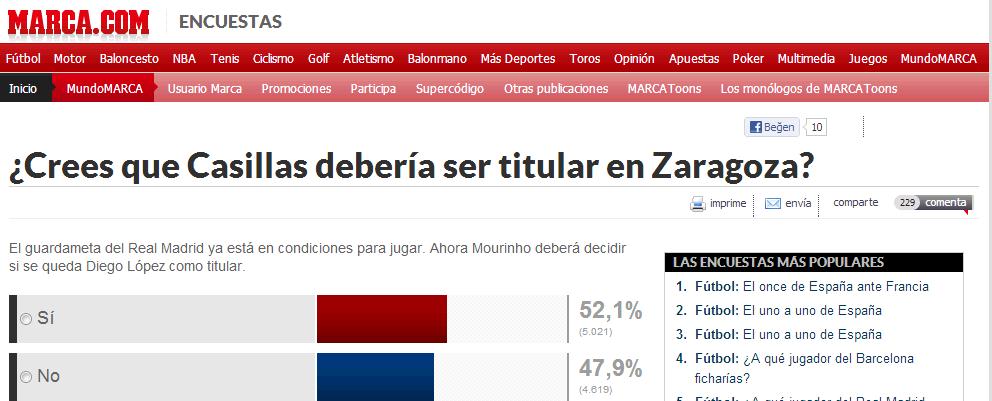 Fakat, İspanyol medyasında çıkan haberlere göre sakin günlerin de sonu geliyor olabilir. Iker Casillas'ın tekrar iyileşmesi ve form tutmaya başlaması sonrası, Mourinho'nun Diego Lopez'i mi yoksa Iker Casillas'ı mı oynatacağı büyük tartışma konusu. Hatta, İspanyolların ünlü gazetesi Marca'da 'Casillas mı Lopez mi' anketinde oylar %52 Lopez lehine...