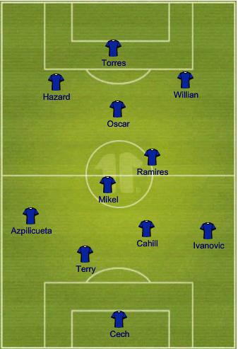 Portekizli menajer, orta sahada Mikel'in yanında Ramires'e şans verecek. Önlerinde ise Hazard, Oscar ve Willian üçlüsü görev alacak. Forvette ise formsuz Samuel Eto'o'nun yerine, kontraatağa daha uygun olan ve açık savunmalara karşı iyi form gösteren Fernando Torres'in denendiğı yazıldı.