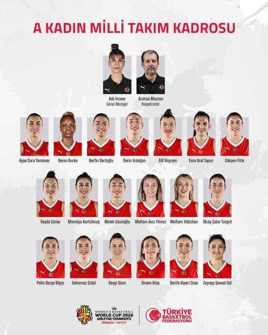 FIBA 2026 Dünya Kupası Elemeleri'nde mücadele edecek A Milli Kadın Basketbol Takımı'nın kadrosu belli oldu.