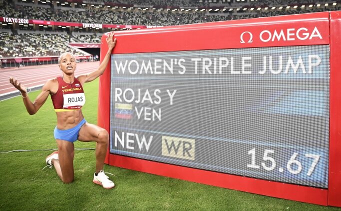 2020 Tokyo Olimpiyat Oyunları'nın 9. gününde Venezuelalı Yulimar Rojas, kadınlar üç adım atlamada dünya rekoru kırarak altın madalya kazandı.