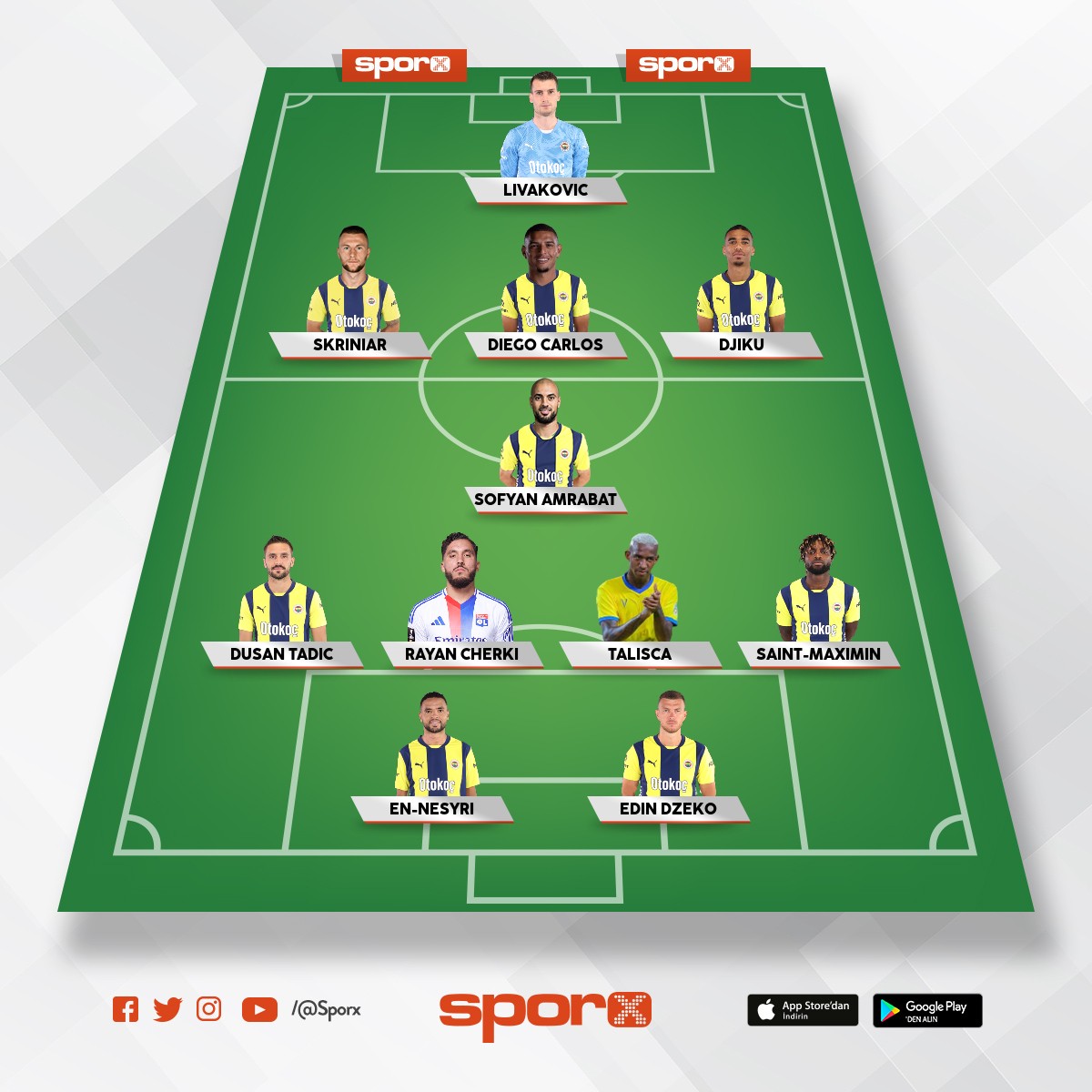 Fenerbahçe Kante, Duran, Talisca, Kerem, Ismail, Fred, Nene, Oosterwolde
