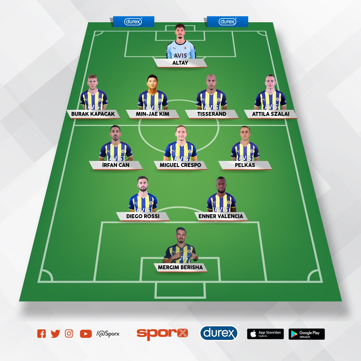 Fenerbahçe Yedek: M.Günok Çağlar M.Müldür İsmail Fred Talisca Nene Aktürkoglu Duran