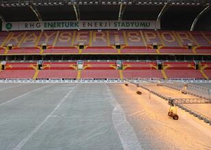 Kentte etkili olan kar yağışının ardından hava sıcaklıkları eksi 17 derecelere kadar düştü. Süper Lig'de mücadele eden Zecorner Kayserispor'un maçlarına ev sahipliği yapan RHG Enertürk Enerji Stadyumu'nda da zeminin korunması için çalışmalar yapıldı. Lige verilen arada, Büyükşehir Belediyesi bünyesindeki Spor A.Ş. tarafından bakım ve onarımları yapılan stadyumda, zeminin dondan etkilenmemesi için çim üstüne özel naylon örtü serildi. Eksi 17 derecede stadyum zemini naylon örtüyle hava aldırılmazken, 2-3 gün arasında ise örtü kaldırılıp çimler havalandırıldı. Yapay güneşleme sisteminin de devrede olduğu stadyumda, çimlerin soğuk havadan zarar görmemesi için çalışmalar sürüyor.