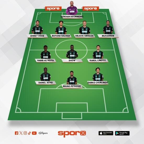 Beşiktaş: Ersin, Murillo, Agbadou, Uduokhai, Rıdvan, Asllani, Ndidi, Cengiz, Cerny, Olaitan, Oh.