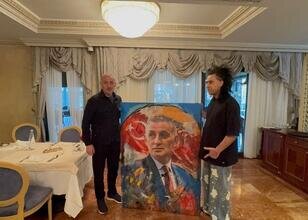 A Milli Futbol Takımı'nın konakladığı otele giden sanatçı Kaya, Hacıosmanoğlu'na yaptığı resmi gösterdi. Futbol dünyasından önemli futbolcuların resimlerini yapan ünlü sanatçı Ersan Kaya bu kez Türk futbolunun en üst yöneticisi İbrahim Hacıosmanoğlu için yaptığı özel çalışmayı kendisine Kosova'nın Priştine kentinde teslim etti.