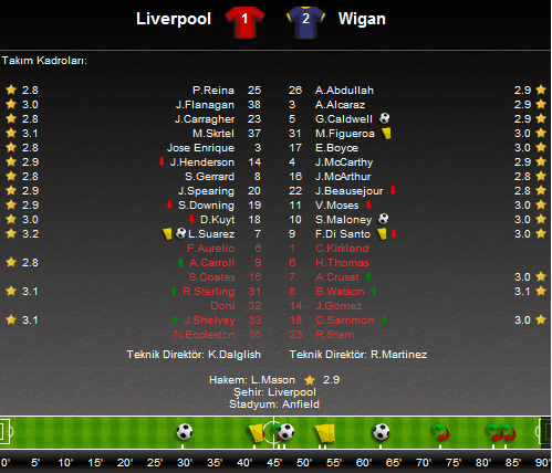Liverpol bu sonucun ardından 42 puanla yedinci, Wigan ise 25 puanla 19. sırada yer aldı. Liverpool gelecek hafta deplasmanda Newcastle United'e konuk olurken Wigan Athletic sahasında Stoke City ile karşılaşacak.