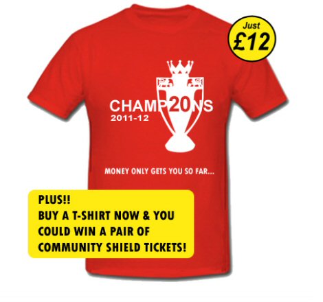 Premier Lig'de sezonun bitmesine 8 maç olmasına rağmen takımlarının zaferinden emin olan Manchester United'ın girişimci taraftarları şampiyonluk tişörtlerini satışa çıkardılar.
