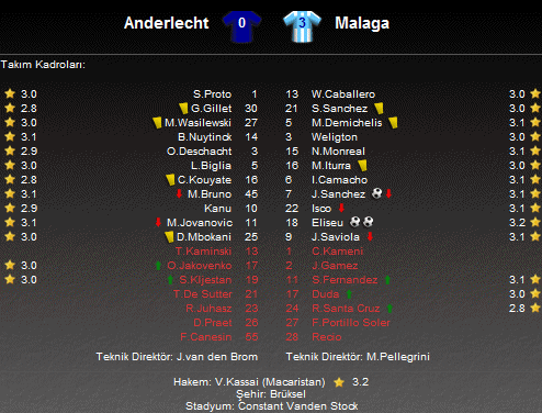 Şampiyonlar Ligi C Grubu ikinci maçında Malaga, deplasmanda Belçika ekibi Anderlecht'e konuk oldu.