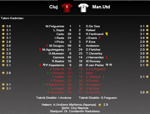 Temsilcimiz Galatasaray'ında yer aldığı H Grubu'ndaki bir diğer karşılaşmada Cluj evinde Manchester United'ı ağırladı. Ada ekibi çekişmeli geçen karşılaşma sonunda sahadan 2-1'lik galibiyetle ayrıldı.
