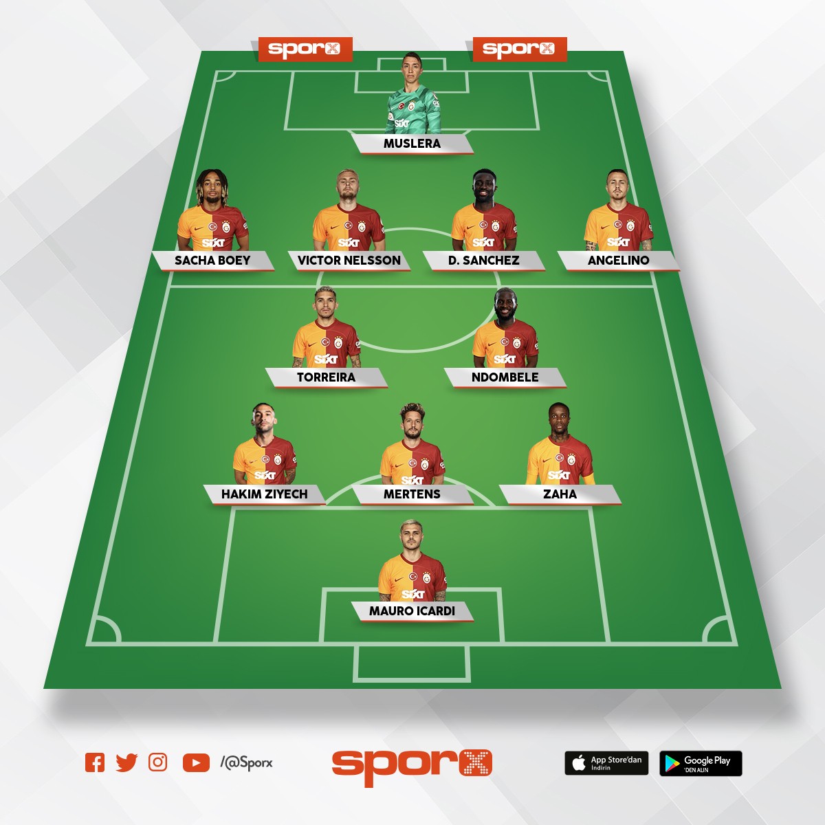 Yedekler:Günay,İlkay,Lemina,İcardi,Sallai,Barış,Jakobs