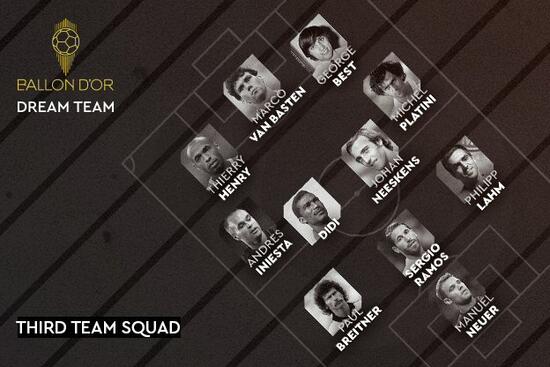 France Football dergisi tarafından her yol verilen Ballon d'Or ödüllerinin yanı sıra bu sene 'Rüya Takım' seçildi. Futbol tarihinin en iyi isimlerinden oluşan üç rüya takım açıklandı.