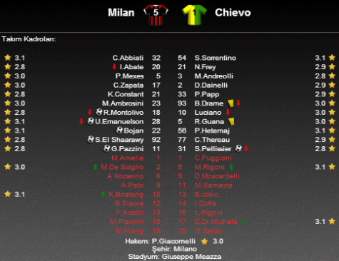 İtalya Ligi'nde 11. hafta maçında Milan ile Chievo karşı karşıya geldi. San Siro'da oynanan maçta Milan, Chievo'yu 5-1 gibi farklı bir skorla mağlup etti.