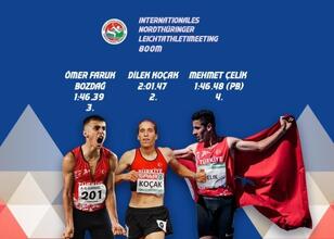 Sondershausen kasabasındaki organizasyonda yarışan milli atletlerden Dilek Koçak, kadınlar 800 metrede 2'nci, Ömer Faruk Bozdağ ise erkekler 800 metrede 3. oldu.