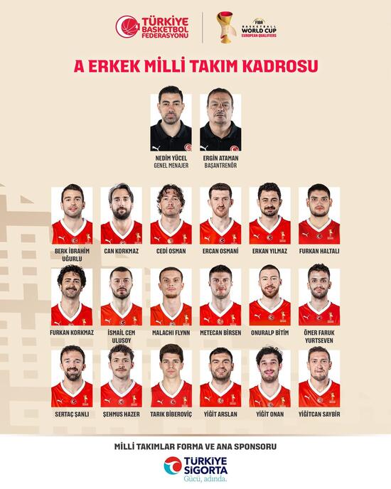 A Milli Takımımız, FIBA 2027 Basketbol Dünya Kupası Elemeleri'nde 27 Şubat Cuma günü TSİ 21.00'de deplasmanda ve 2 Mart Pazartesi günü saat 21.00'de Basketbol Gelişim Merkezi'nde Sırbistan ile karşı karşıya geleceği maçlar için aday kadro belirlendi.