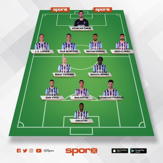 Trabzonspor: Uğurcan, Larsen, Baniya, Benkovic, Eren, Berat, Mendy, Visca, Bakasetas, Fountas, Onuachu.