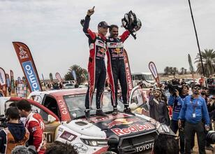 Toyota, şampiyon pilotu Nasser Al-Attiyah ve co-pilotu Mathieu Baumel ile üst üste ikinci kez Dakar Rallisi'ni kazandı.