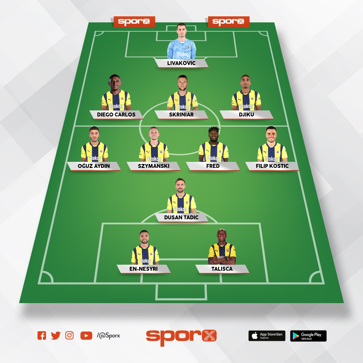 Fenerbahçe Kante, Duran, Talisca, Kerem, Ismail, Fred, Nene, Oosterwolde
