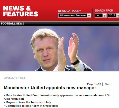 Bu açıklamadan kısa bir süre sonra ise Manchester United kulübü, resmen Moyes'in yeni sezonda takımın menajerlik görevini üstleneceğini duyurdu. 1 Temmuz'da takımın başında göreve başlayacak olan Moyes'un sözleşmesinin ise 6 yıllık olduğu ifade edildi.