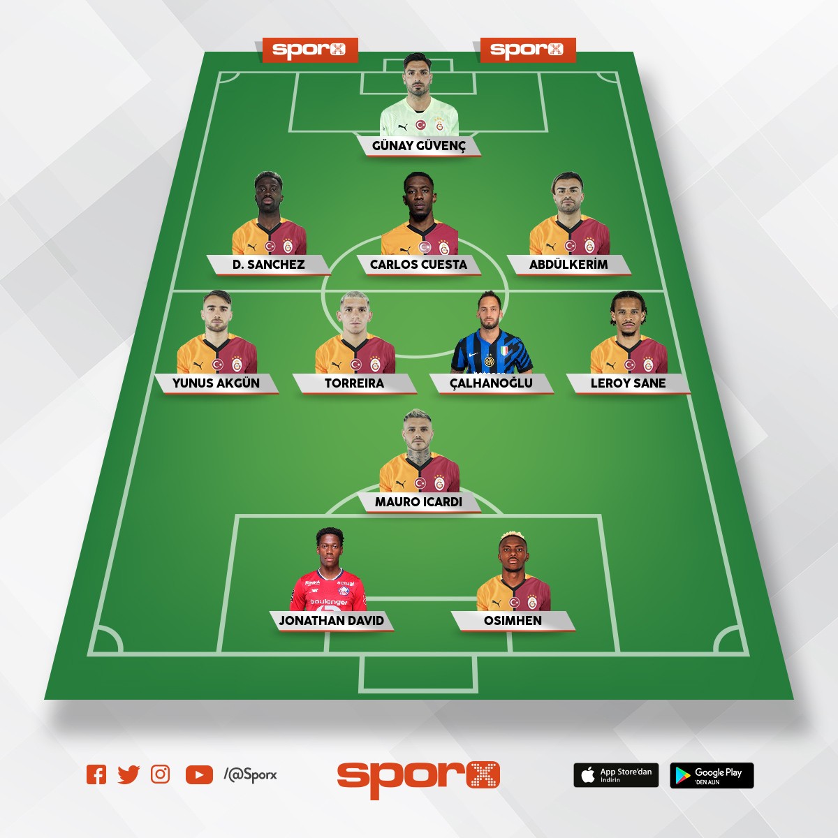 Galatasaray Abdulk,Jacob,Salai,Lemin,İlkay,Yunus,Barış,Icardi.