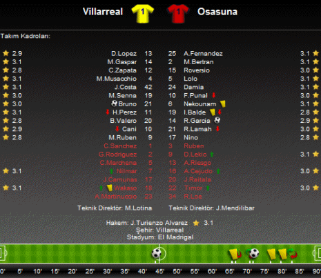 Küme düşme tehlikesini ensesinde hisseden Villareal ve Avrupa Kupalarına katılma mücadelesi veren Osasuna'yı karşı karşıya getiren mücadele sonunda gülen çıkmadı ve maç 1-1'lik beraberlik ile sonuçlandı.