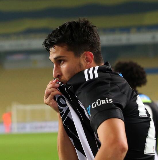 Beşiktaş'ın kaptanı Necip, golden sonra tribünlere doğru kayarak bir sevinç gerçekleştirdi ve ardından da armayı öperek poz verdi.