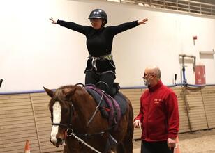 Hakem ve gözlemcilerin hazır bulunduğu manejde sporcular, at sırtında farklı hareketler yaparak bireysel gösteri sundu.