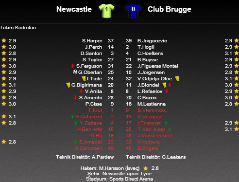 UEFA Avrupa Ligi D Grubu karşılaşmasında Newcastle United sahasında Club Brugge'ü ağırladı.