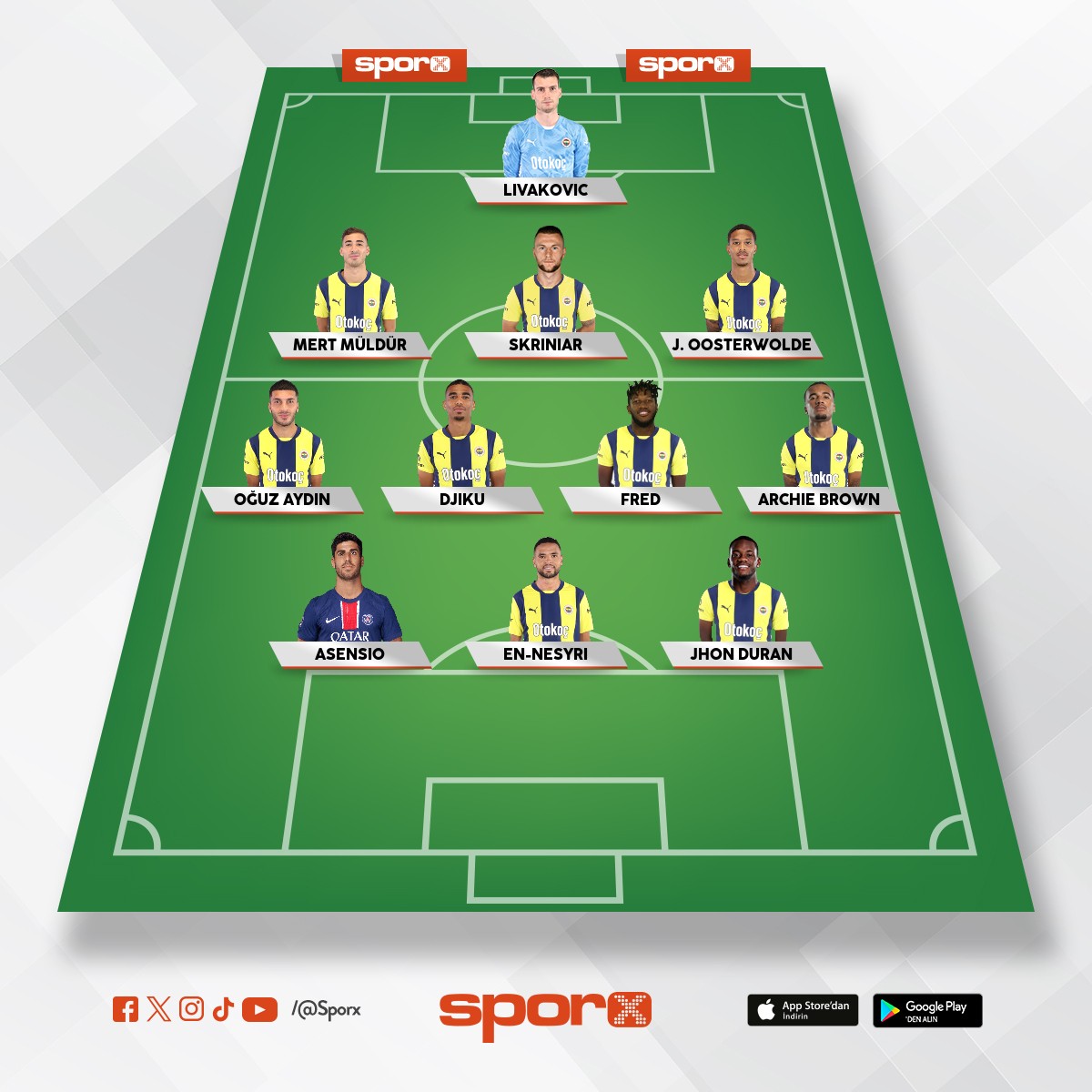 Fenerbahçe Kerem,Nene,Talisca,Duran,Oster,İsmail,Mert,Yiğit,İrfan,