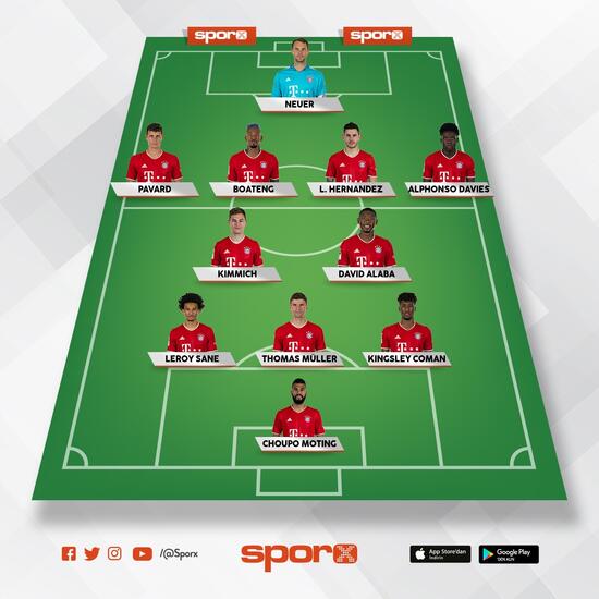 Neuer; Pavard, Boateng, Hernandez, Davies; Kimmich, Alaba; Sane, Müller, Coman; Choupo-Moting