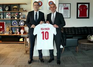 TFF Başkanı Hacıosmanoğlu, ziyaretin sonunda Perçin'e A Milli Takım forması hediye etti.