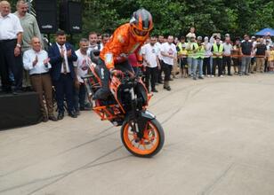 Tunca Beldesi'nde bu yıl 15'incisi düzenlenen Formulaz Tahta Araba yarışlarına katılan ünlü akrobasi şovmeni Birkan Polat, yarışlar arasında gösteri düzenledi.