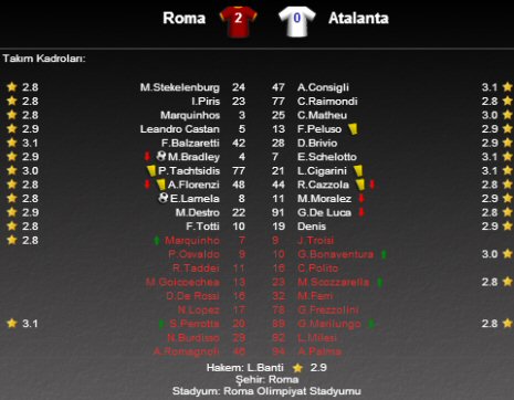İtalya Serie A'nın 7. haftasında Roma sahasında Atalanta'yı konuk etti.