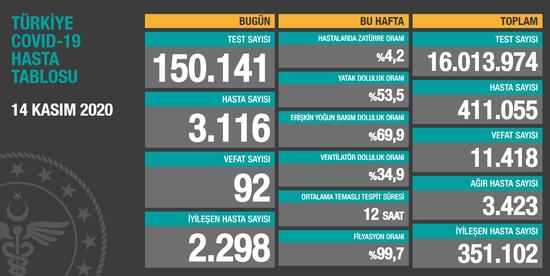 Bakan Koca, koronavirüste günün hasta sayısının 3116 olduğunu belirtirken, bugün 92 vatandaşımızın hayatını kaybettiğini açıkladı. Öte yandan pandemi sürecinin başından beri hastalığı atlatan vatandaşlarımızın sayısı ise 351102 olarak paylaşıldı.