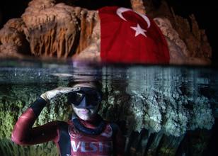 Dünya dalış rekortmeni milli sporcu Şahika Ercümen, Mersin'in Aydıncık ilçesindeki Gilindire Mağarası'nda gerçekleştirdiği denemede, paletsiz kategoride tek nefeste 100 metreye dalarak kadınlar dünya rekorunu kırdı.