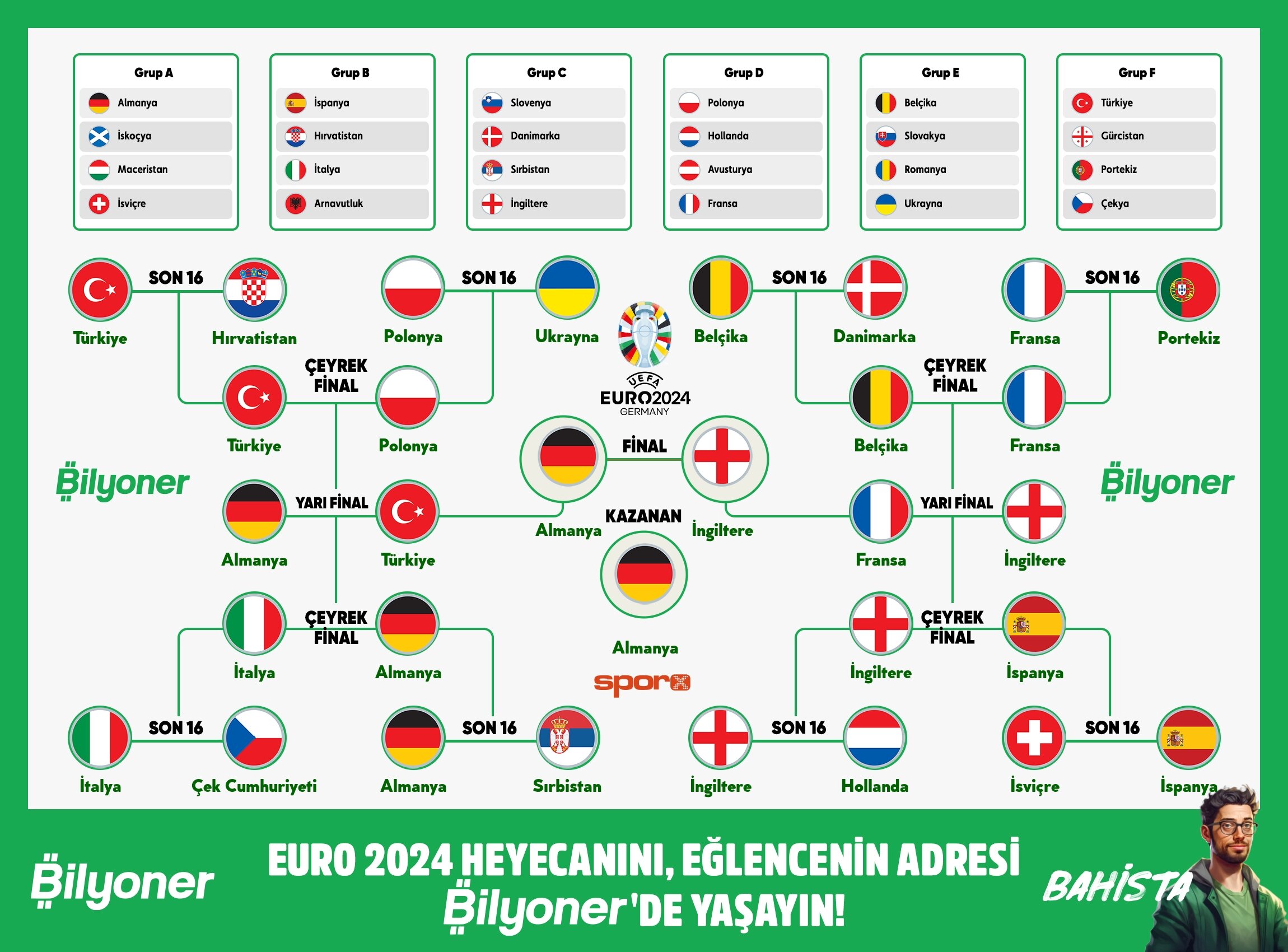 EURO 2024'de şampiyonu belirledim. Sen de 1 dakikada turnuva ağacını oluştur! @bilyoner
