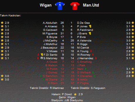 JJB Stadı'nda oynanan karşılaşmayı Wigan 1-0 kazanarak Manchester United'a şampiyonluk yolunda önemli bir çelme taktı.