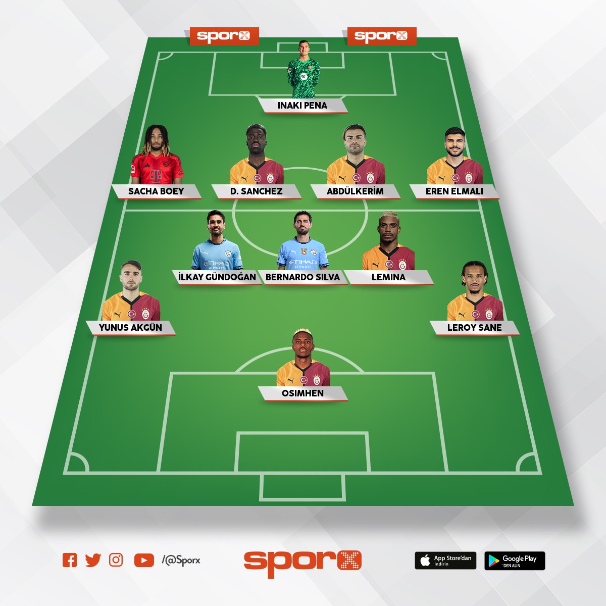 Galatasaray Abdulk,Jacob,Salai,Lemin,İlkay,Yunus,Barış,Icardi.