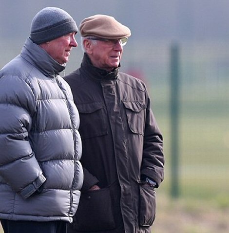 * Sir Alex Ferguson ve Sir Bobby Charlton sona antrenmanı izledi