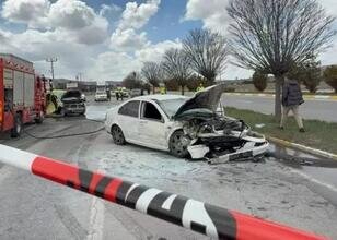 Çarpmanın etkisiyle savrulan araçlardan otomobil alev aldı. İhbarla olay yerine sağlık, itfaiye, AFAD ve polis ekipleri sevk edildi.
